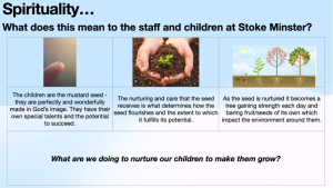 Staff have agreed and developed a common definition of spirituality and what this means for the children at Stoke Minster, our definition of spiritual growth is…