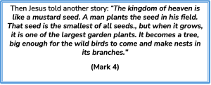 Our school’s theologically rooted Christian vision underpins our culture in which pupils and adults thrive. At Stoke Minster CE Academy, the parable of the mustard seed reminds us that from small seeds can come great potential. We consider our school to be like the mustard tree in our story as we are proud of the diversity that our school embraces. Just like the birds of the air that settle in the branches of the mustard tree, our children come from all over the world and settle into our school beginning their learning journey from different starting points. Our school offers a place of safety and nurture where everyone is welcomed and treated with respect; we pride ourselves in the support offered to all of our families and our children.